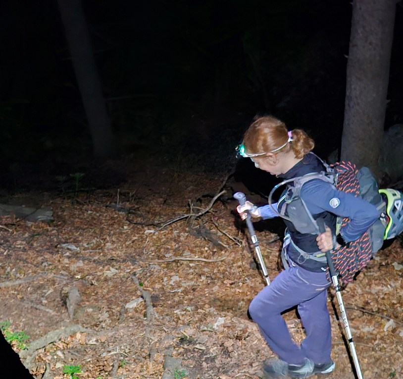 I když člověk plánuje pečlivě, opatrně a s rezervou, může se stát, že bude scházet za šera nebo za tmy, v lese se setmí poměrně rychle. Na druhou stranu nikdo nechce vláčet po vícedélkách těžký batoh, proto je dobré zvolit lehkou, ale dostatečně výkonnou čelovku. Při posledním návratu jsem otestovali Petzl Bindi. I přes minimalistické rozměry a hmotnost (33g), jsme s ní svítili na druhý stupeň ze tří asi hodinu cestou lesem a v pohodě to stačilo. Pomocí micro USB se pak dá dobít, aby byla připravená na další výpravy. Je možné ji přepnout i do módu červeného světla, které se používá na horských chatách, aby neoslňovalo ostatní.